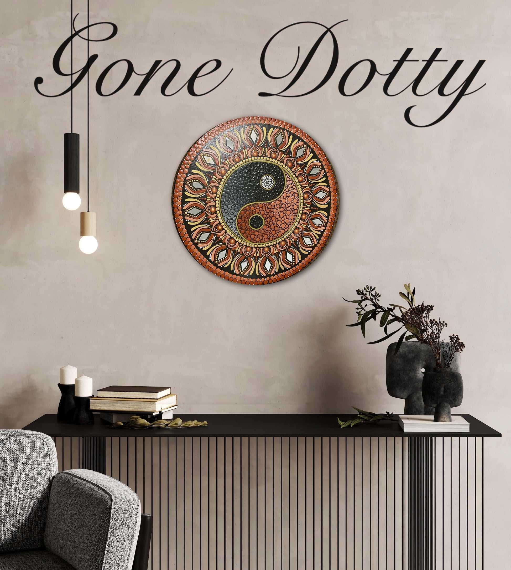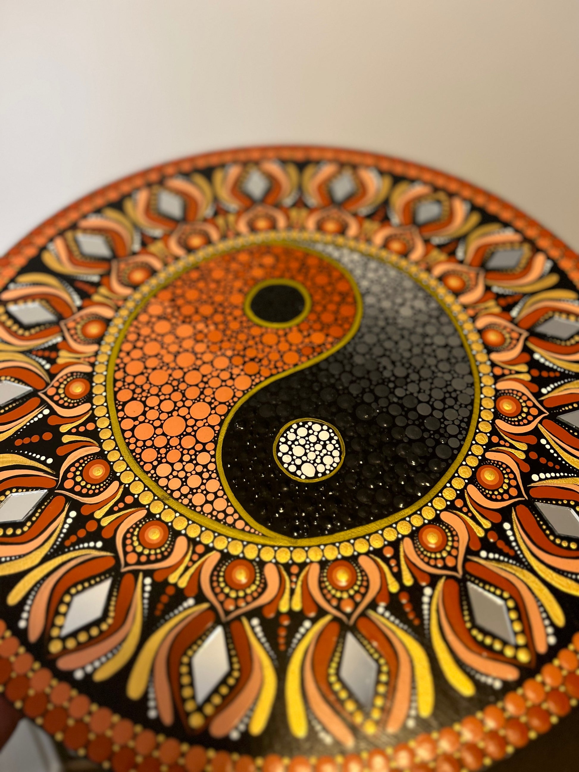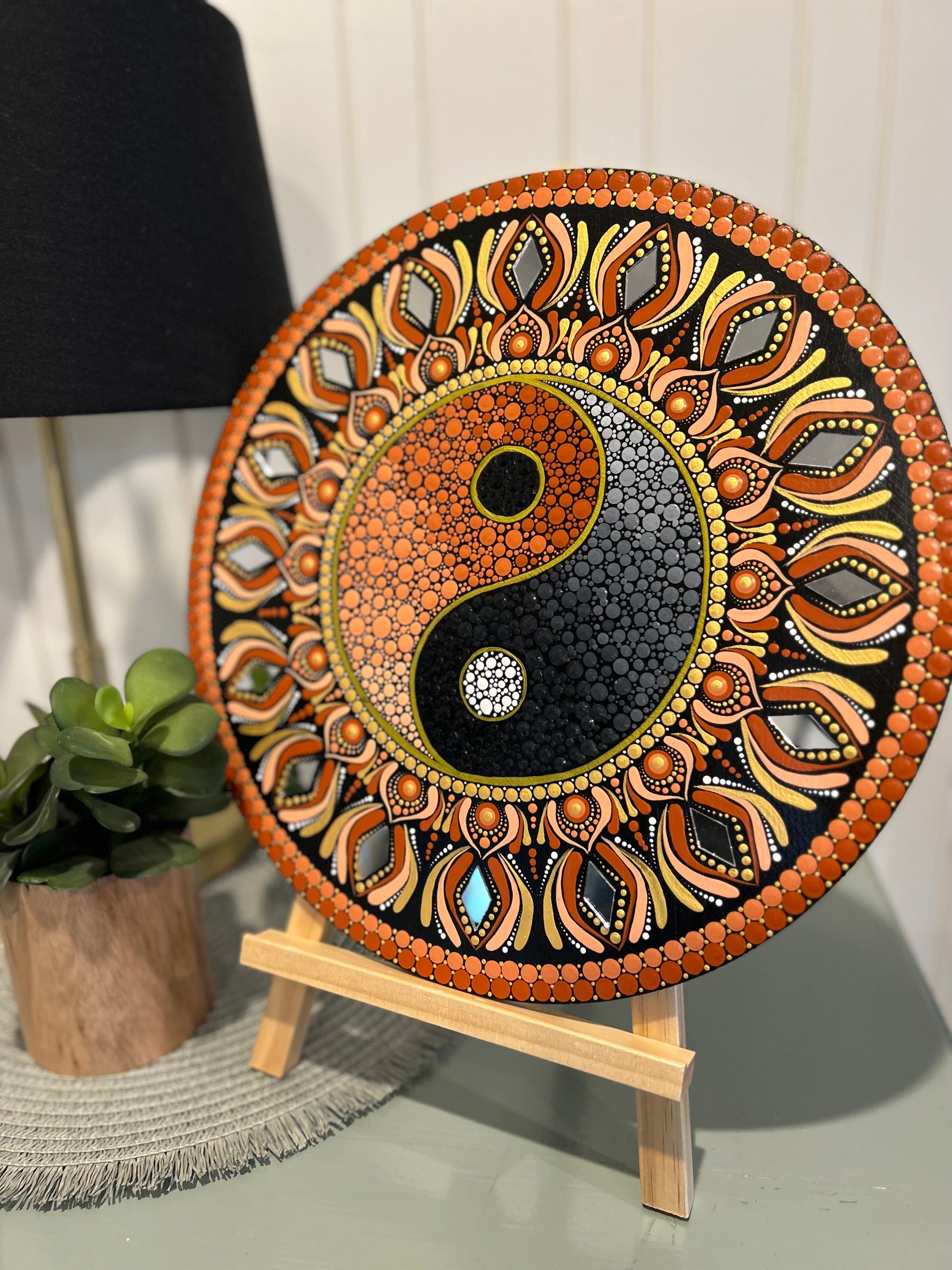 Bring vibrant beautiful style to any space with this 33cm Yin & Yang Mandala in Burnt Orange & Black with Mirrors! This captivating mandala features a striking Yin & Yang design in Burnt Orange, Black and is adorned with mirrors, creating a stunning piece that is sure to draw attention. Who doesn't want this gorgeous style and presence in their home or office? Get it now!!