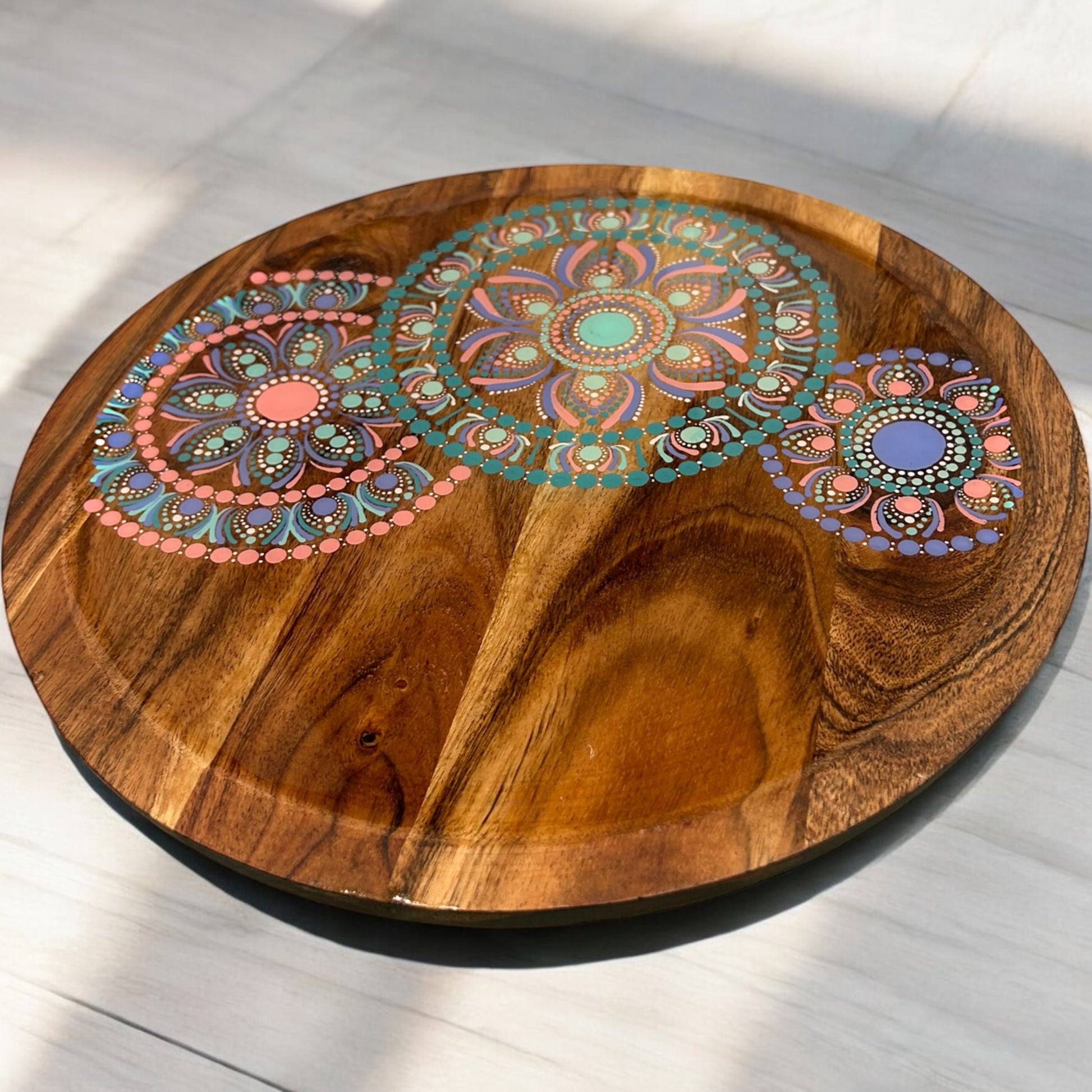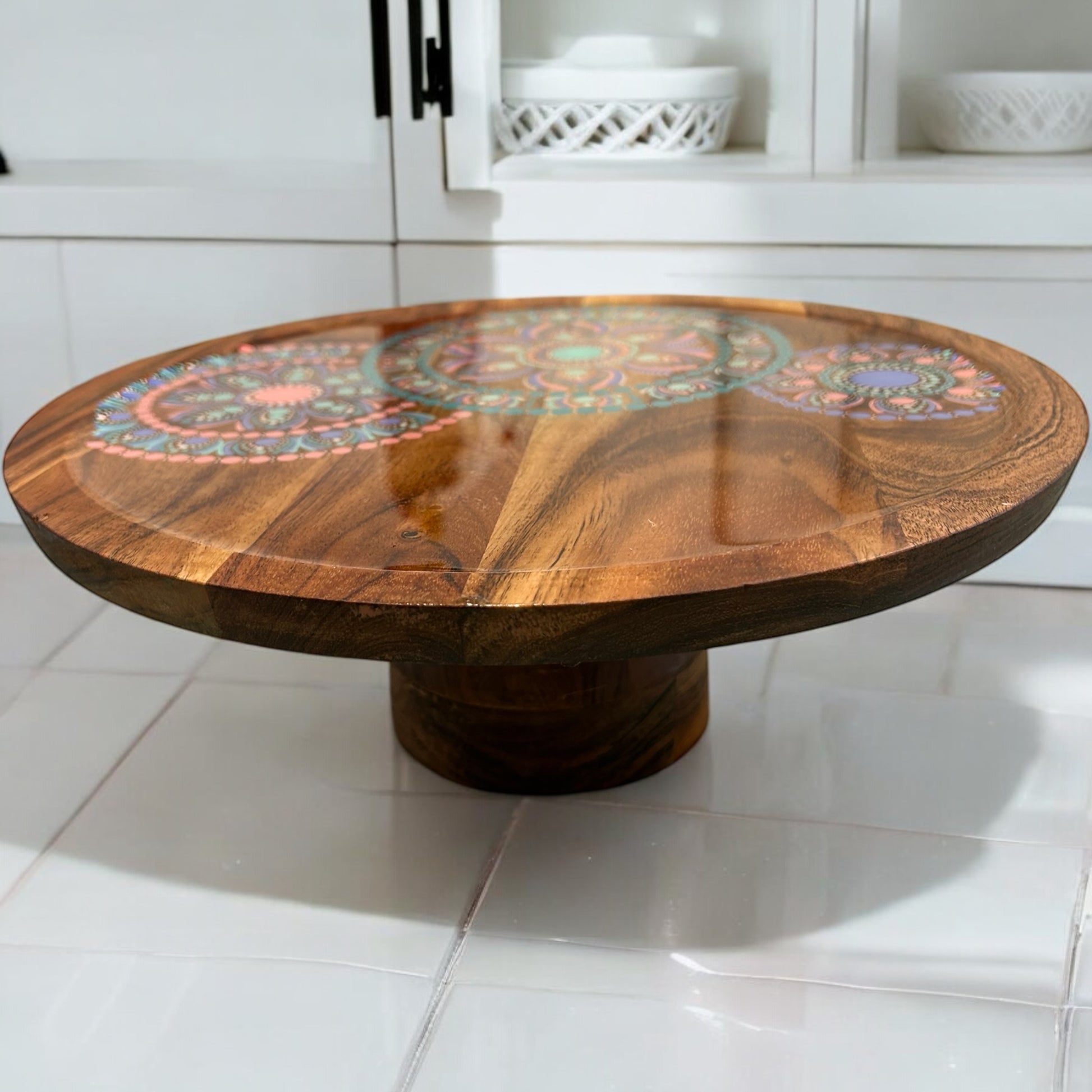 Measuring 11.5cmH x 30cm in diameter, each cake stand is a masterpiece finished with a food-safe resin to preserve its stunning design. The rich acacia wood is treated with vegetable oil, which not only enhances its beauty but also provides protection.