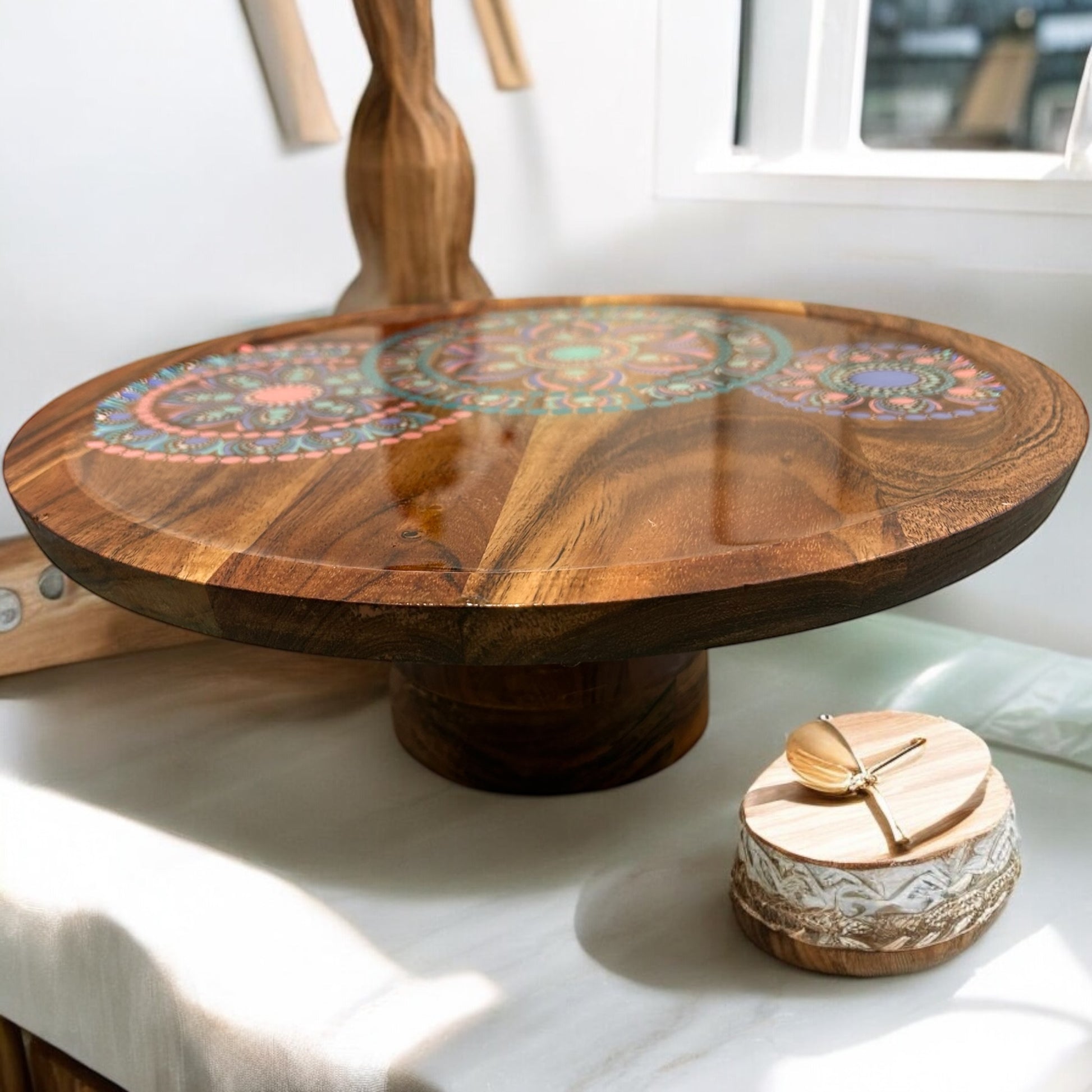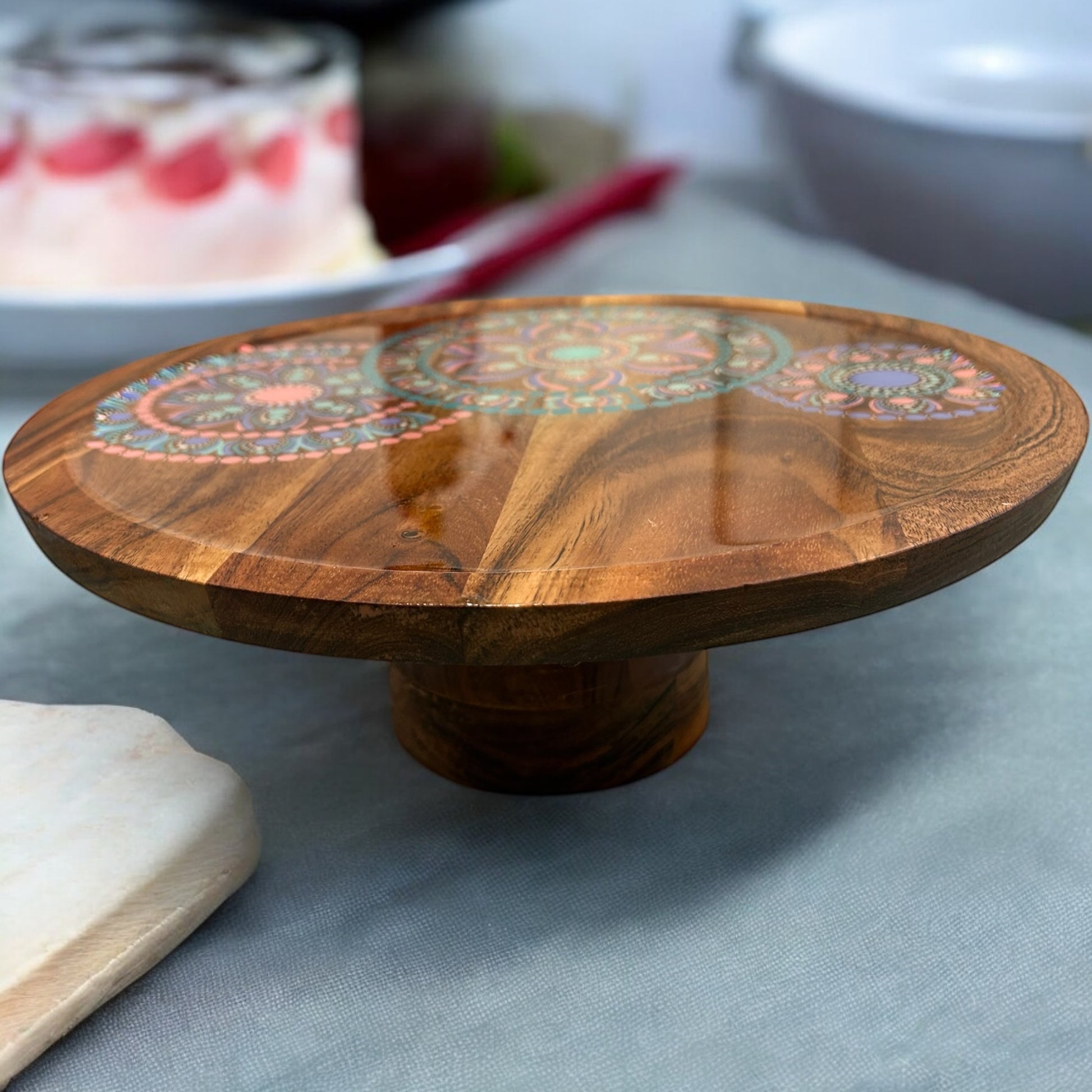 Transform your gatherings into unforgettable experiences with our one-of-a-kind acacia cake stands!