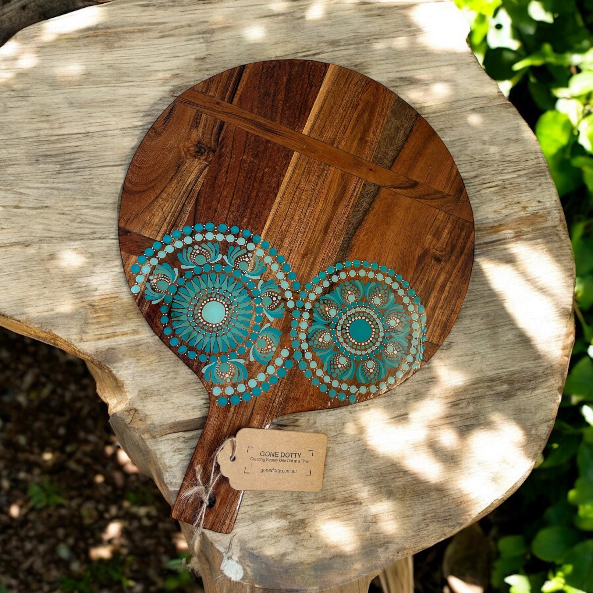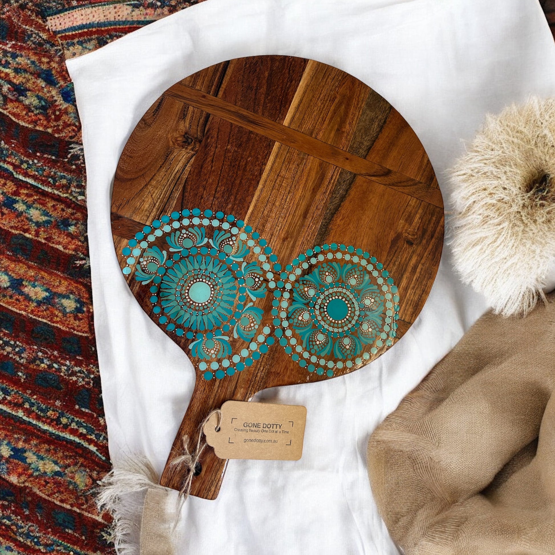 Perfect for any occasion featuring finger foods these paddles are hand-painted with unique patterns, ensuring that no two are alike.