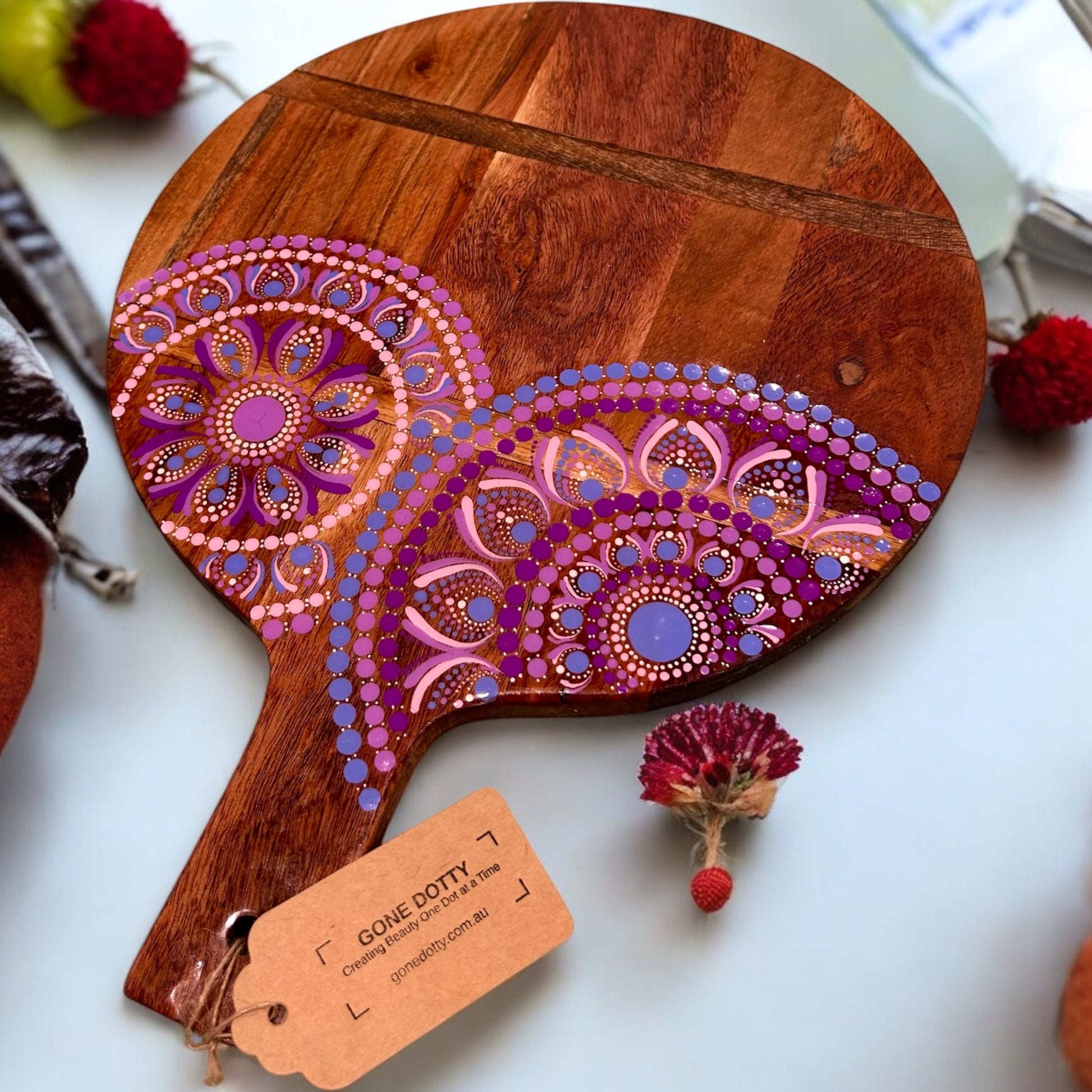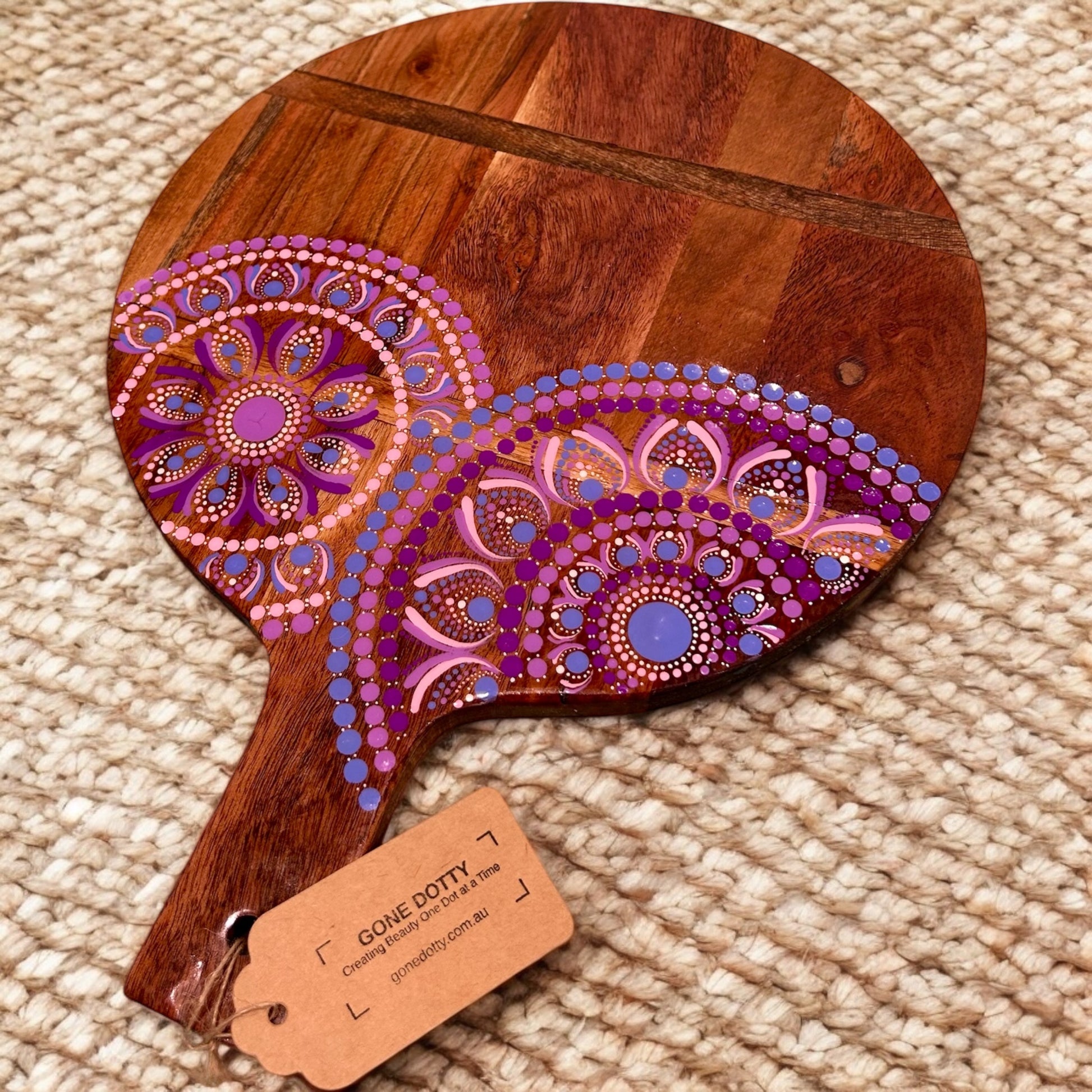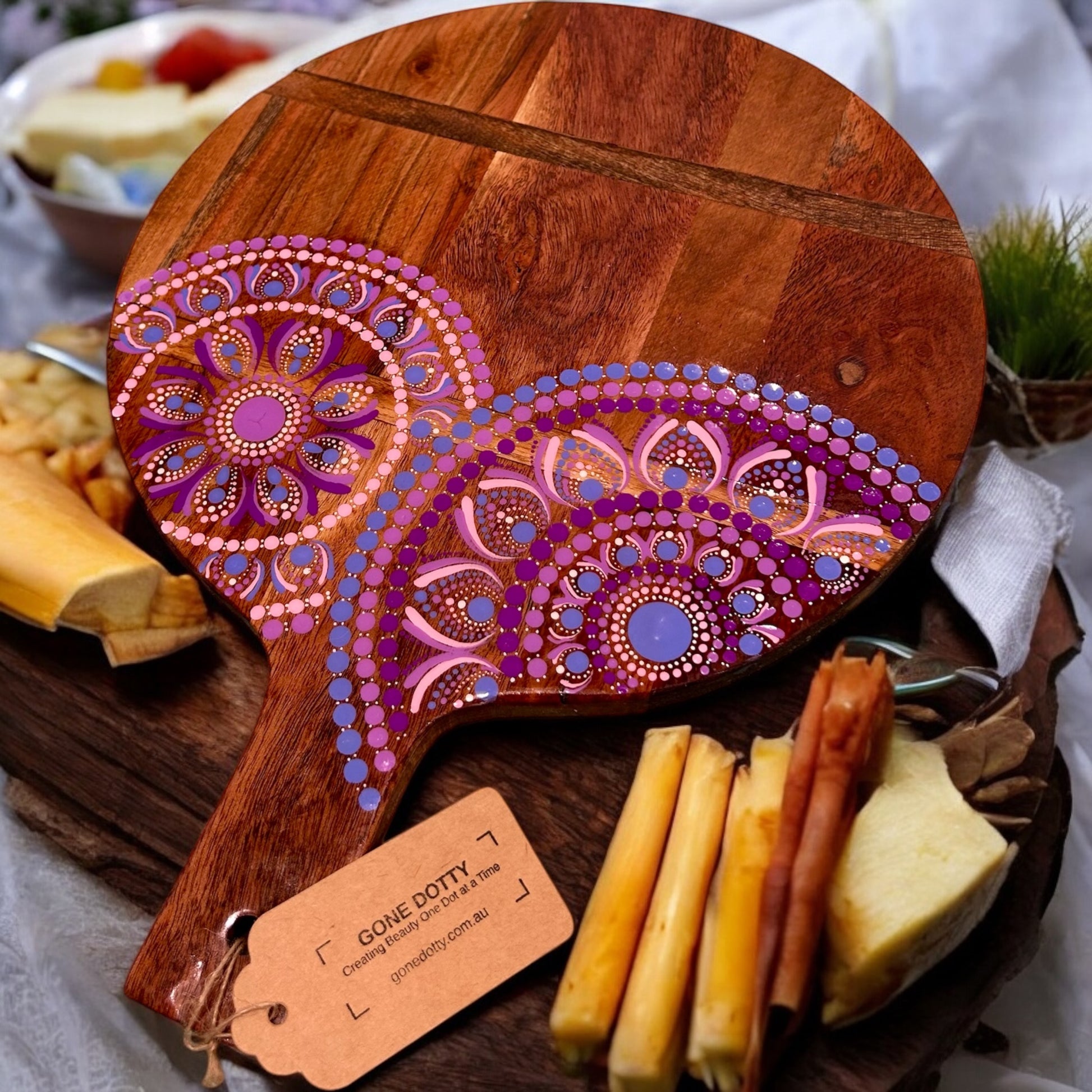 Perfect for any occasion featuring finger foods these paddles are hand-painted with unique patterns, ensuring that no two are alike.