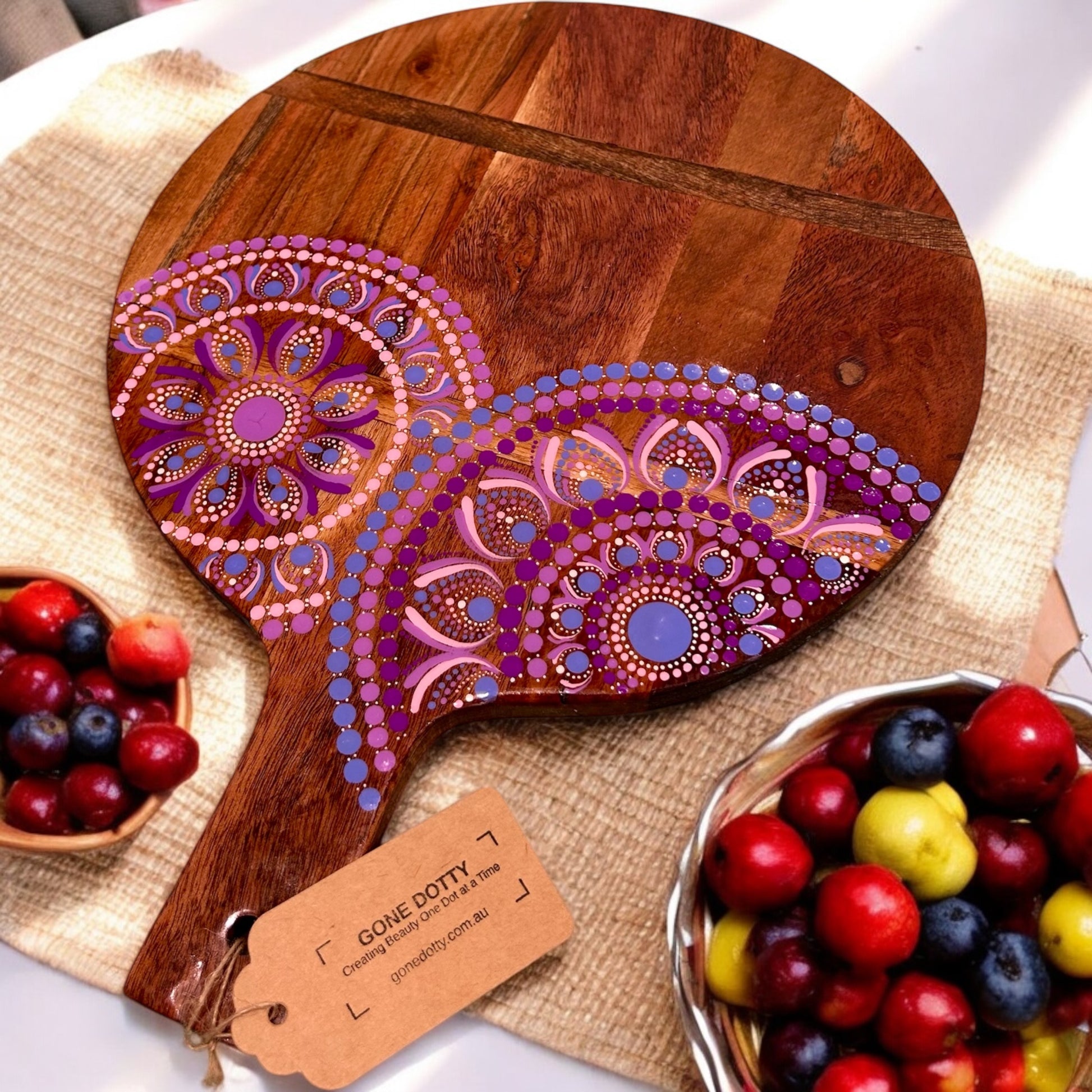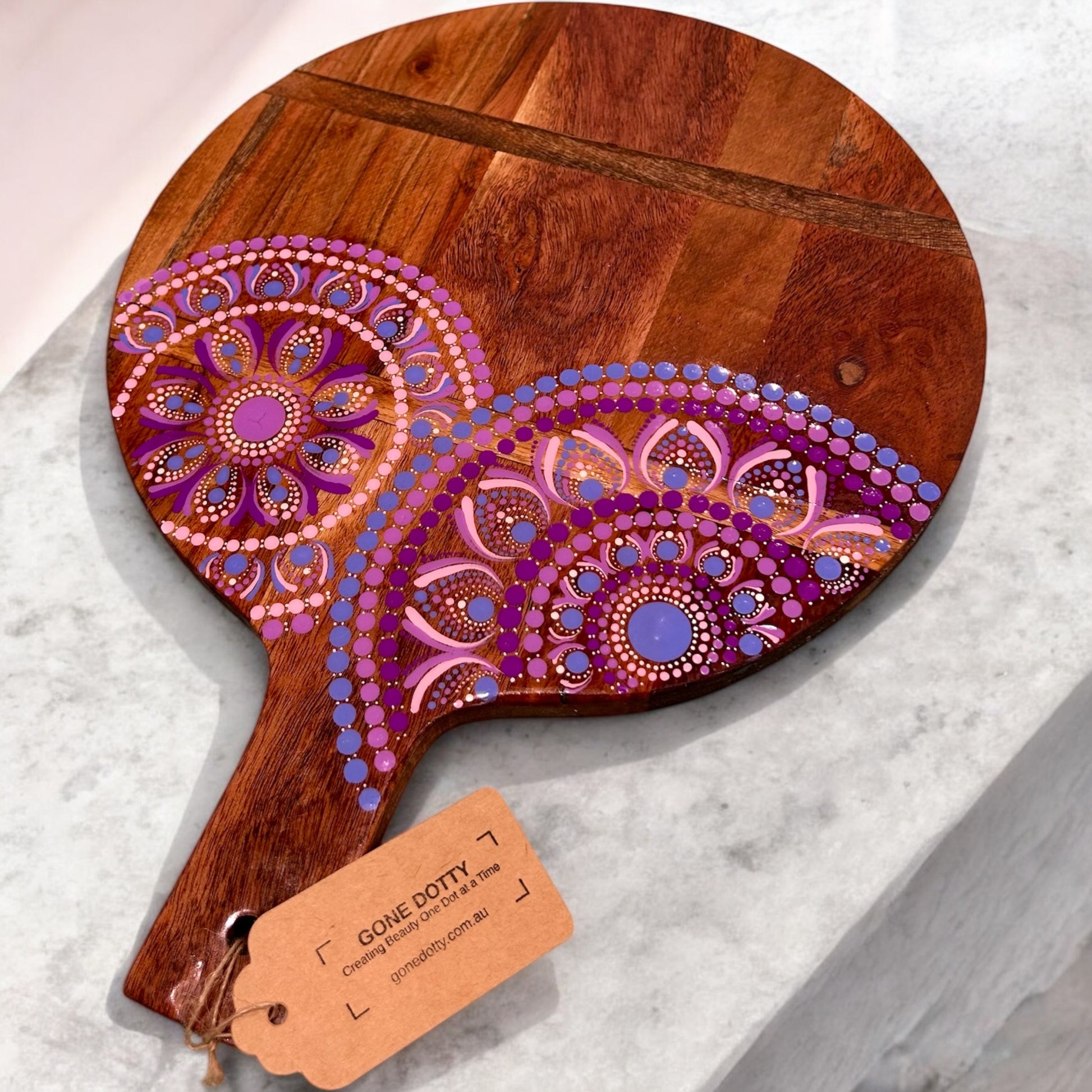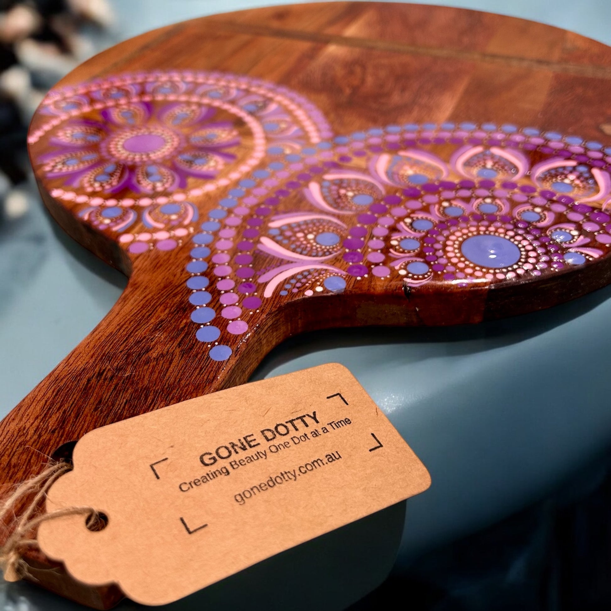 Perfect for any occasion featuring finger foods these paddles are hand-painted with unique patterns, ensuring that no two are alike.