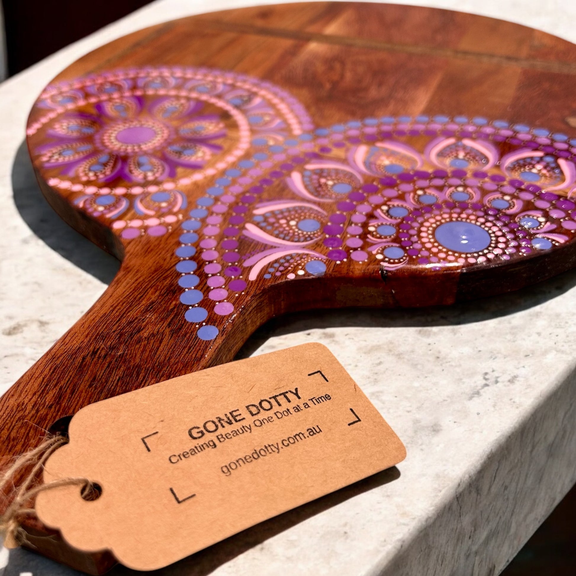 Measuring 40cmL x 30cmW, each paddle is a masterpiece finished with a food-safe resin to preserve its stunning design. The rich acacia wood is treated with vegetable oil, which not only enhances its beauty but also provides protection.
