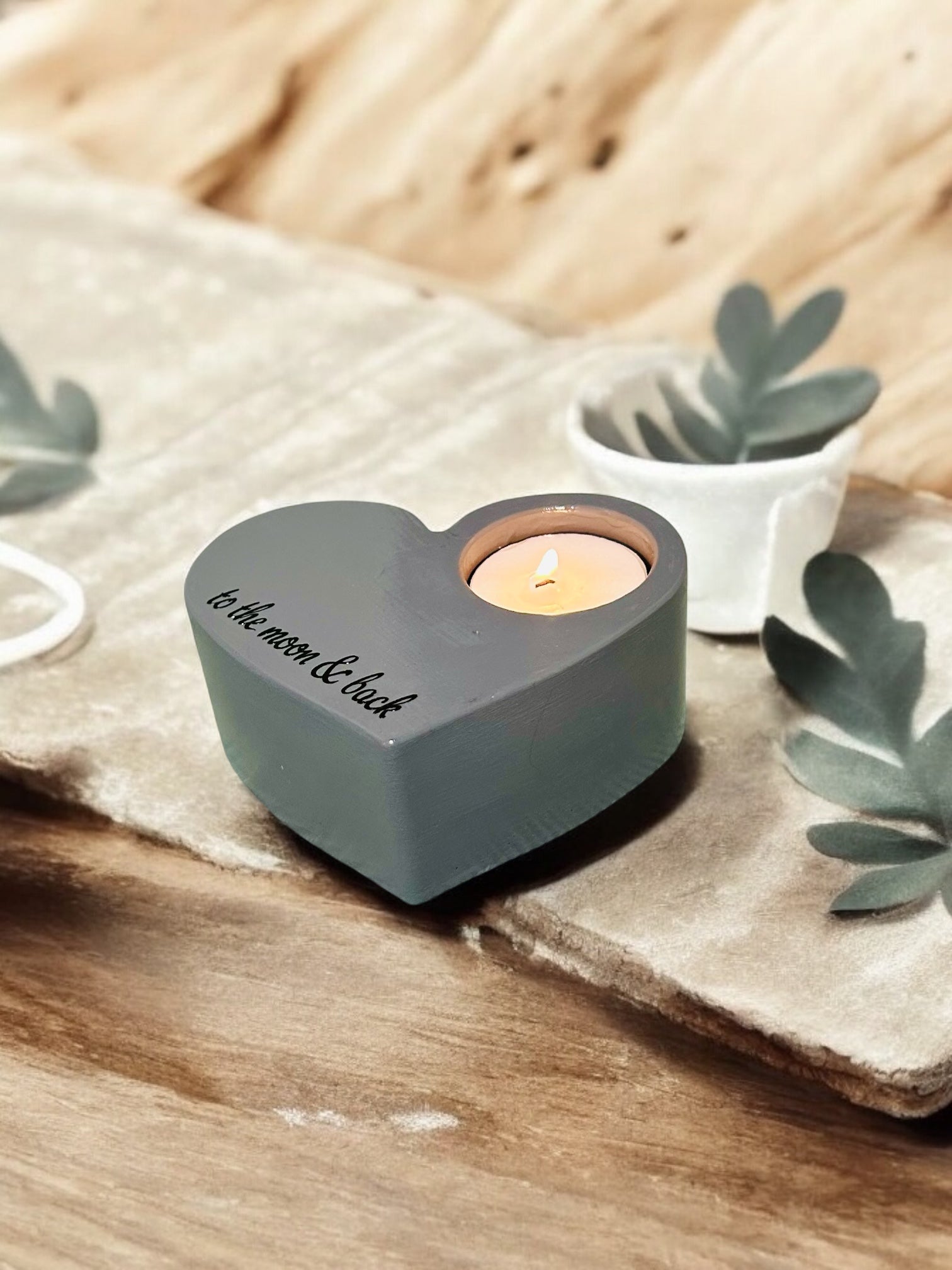 Illuminate your space and your heart with this exquisite hand-cast tealight candle holder - a perfect expression of affection.