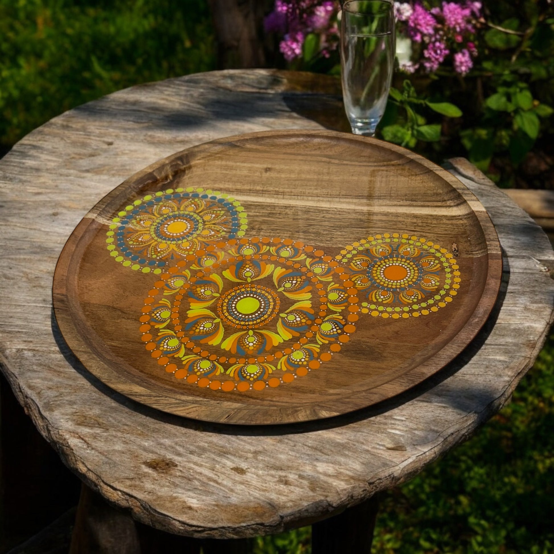 Discover the perfect blend of versatility and charm with this stunning 40cm acacia serving tray! Whether you're searching for a unique gift or a striking addition to your home decor, this tray fits the bill perfectly. Imagine serving drinks at your next party, offering coffee and cake, or presenting delightful nibbles on this exquisite piece. Each tray is a one-of-a-kind work of art, finished with food-safe resin for a protective, glass-like sheen that ensures it stands out while remaining practical. It's a gift that promises to deliver joy for years to come. Remember, to maintain its pristine condition, it's best to avoid using sharp objects on the resin surface.