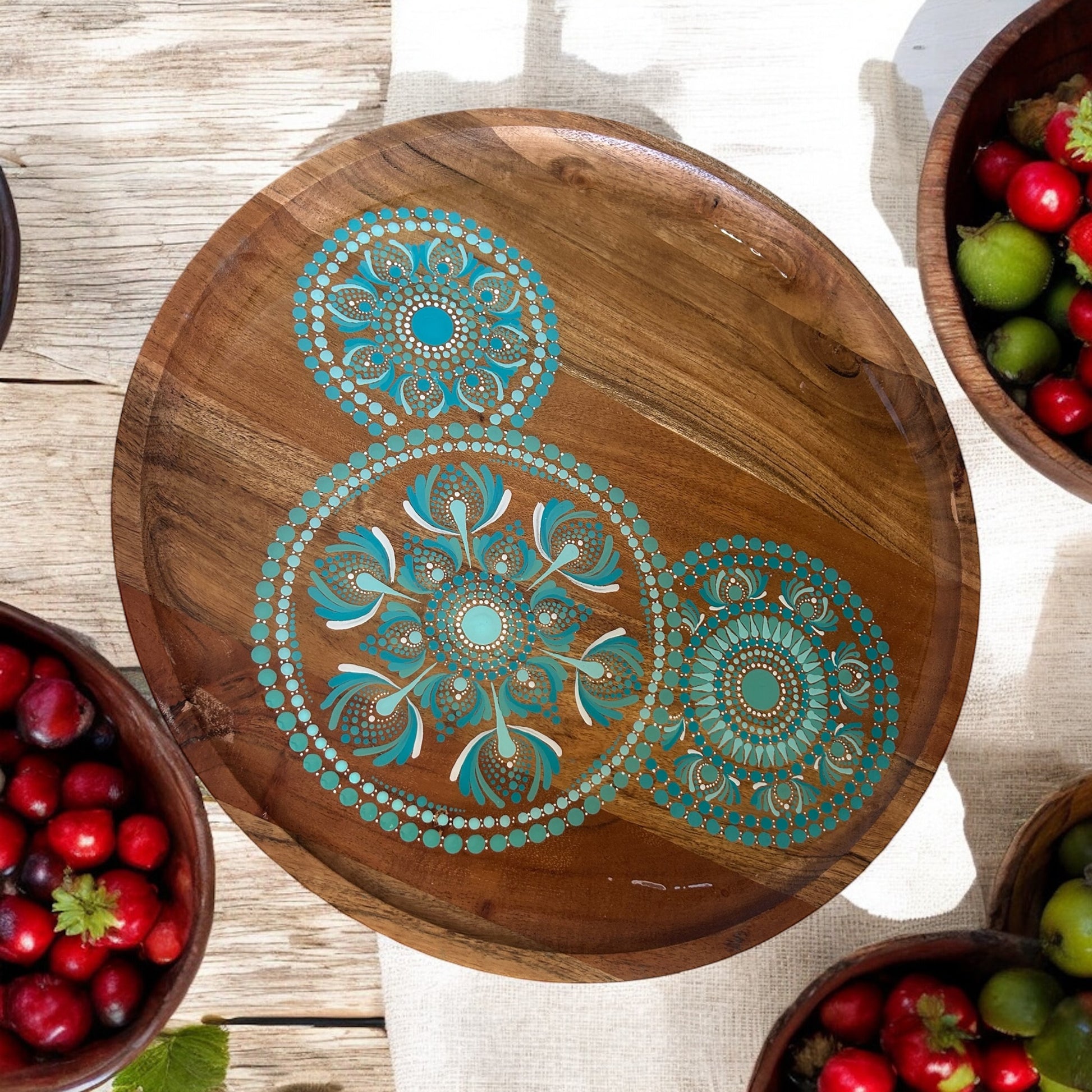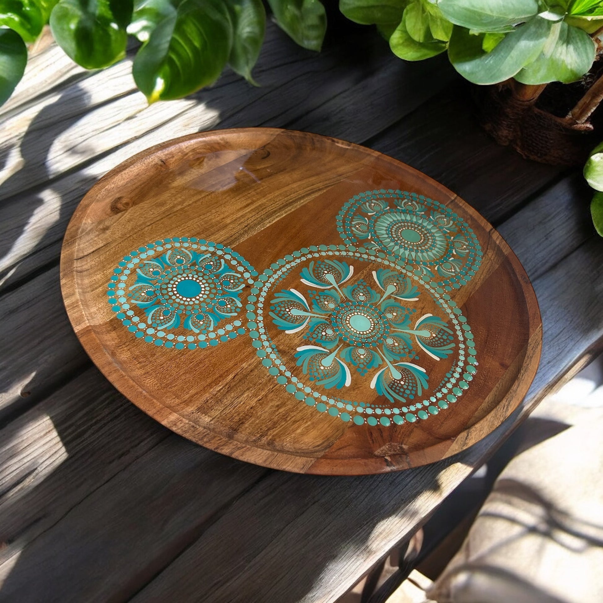 Discover the perfect blend of versatility and charm with this stunning 40cm acacia serving tray! Whether you're searching for a unique gift or a striking addition to your home decor, this tray fits the bill perfectly. Imagine serving drinks at your next party, offering coffee and cake, or presenting delightful nibbles on this exquisite piece. Each tray is a one-of-a-kind work of art, finished with food-safe resin for a protective, glass-like sheen that ensures it stands out while remaining practical. It's a gift that promises to deliver joy for years to come. Remember, to maintain its pristine condition, it's best to avoid using sharp objects on the resin surface.