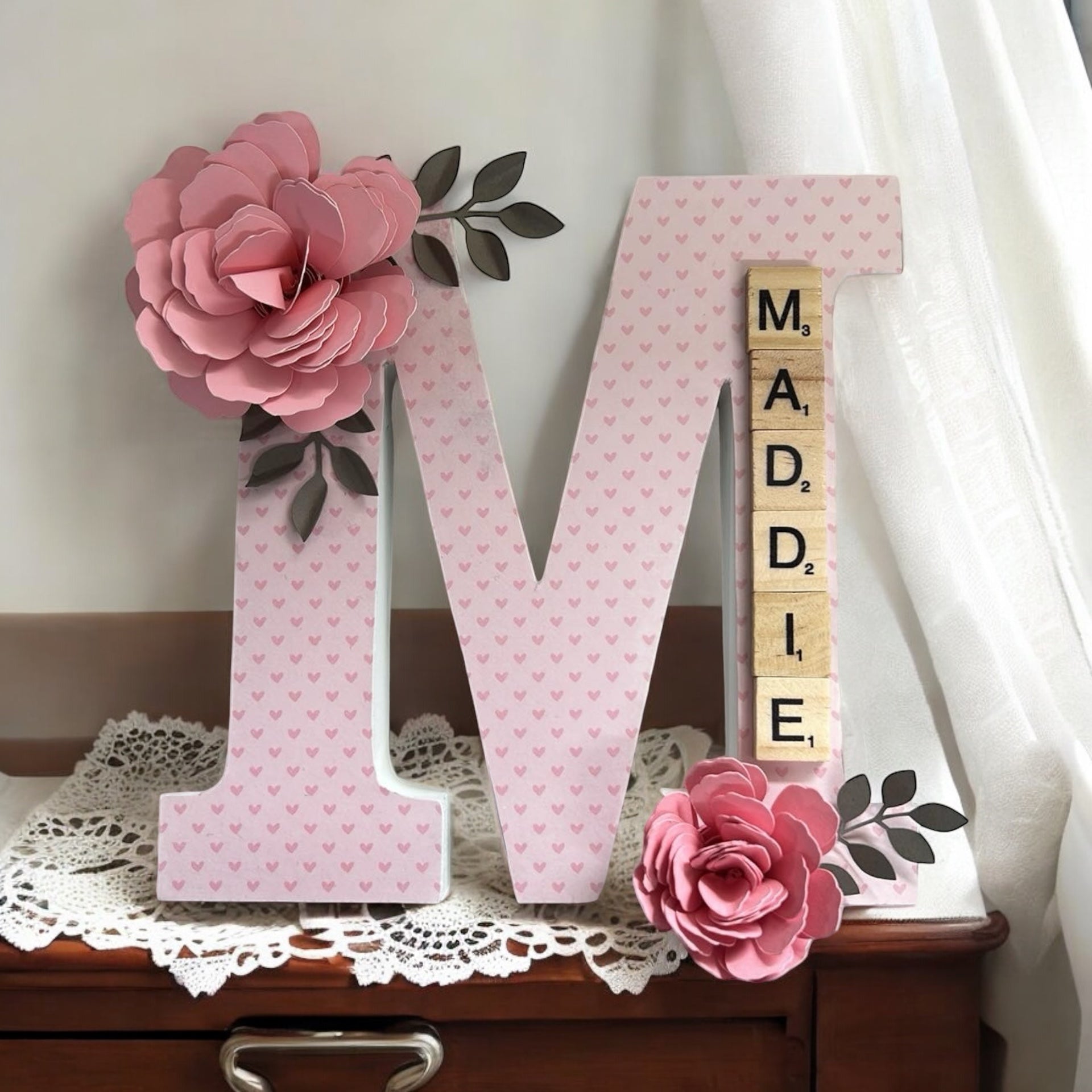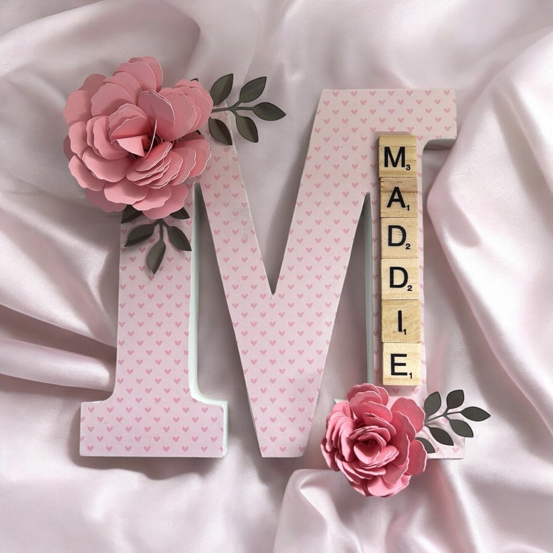 Each letter stands 18cm high, with a pristine white background. Each flower is individually hand-rolled.