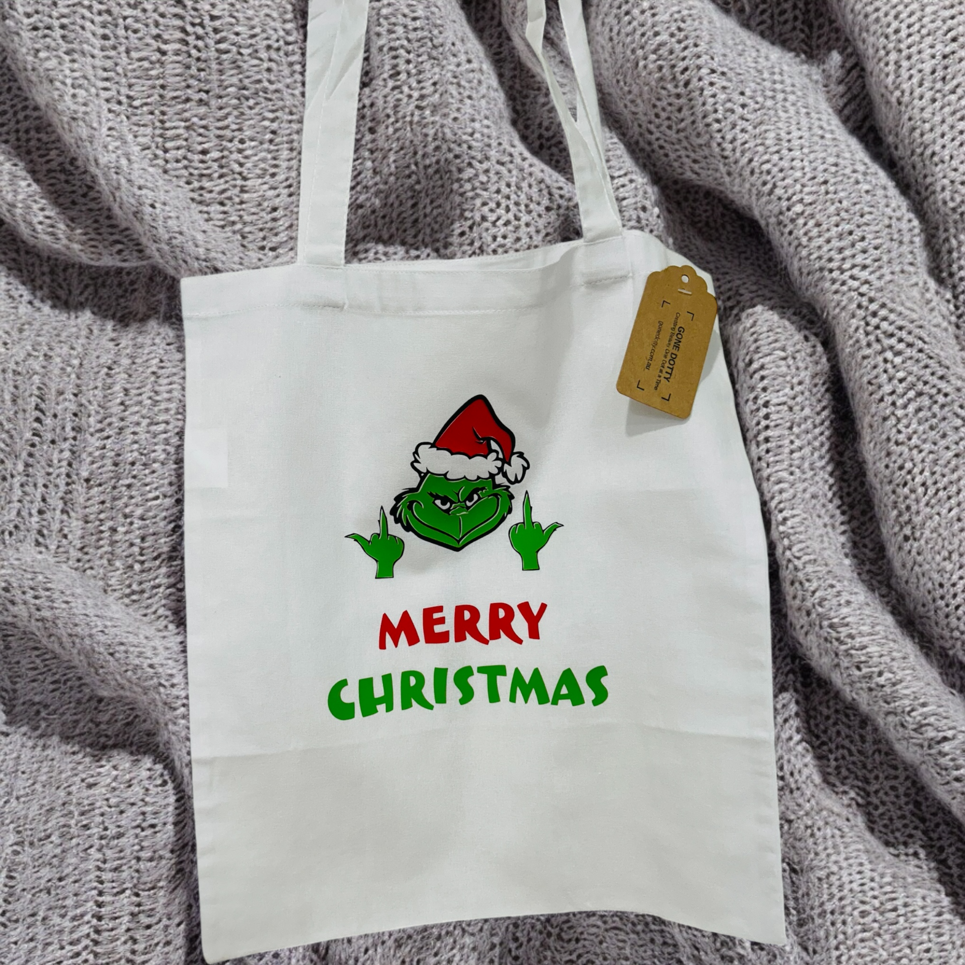 Rediscover the joy of Christmas with these delightful totes! 🎄 Whether you're a fan of The Grinch know someone who's misplaced their holiday cheer, these totes are the ultimate festive companion. Not only do they add a touch of whimsy to your gift-giving as a Christmas gift bag, but they’re also reusable and washable, offering both convenience and sustainability.