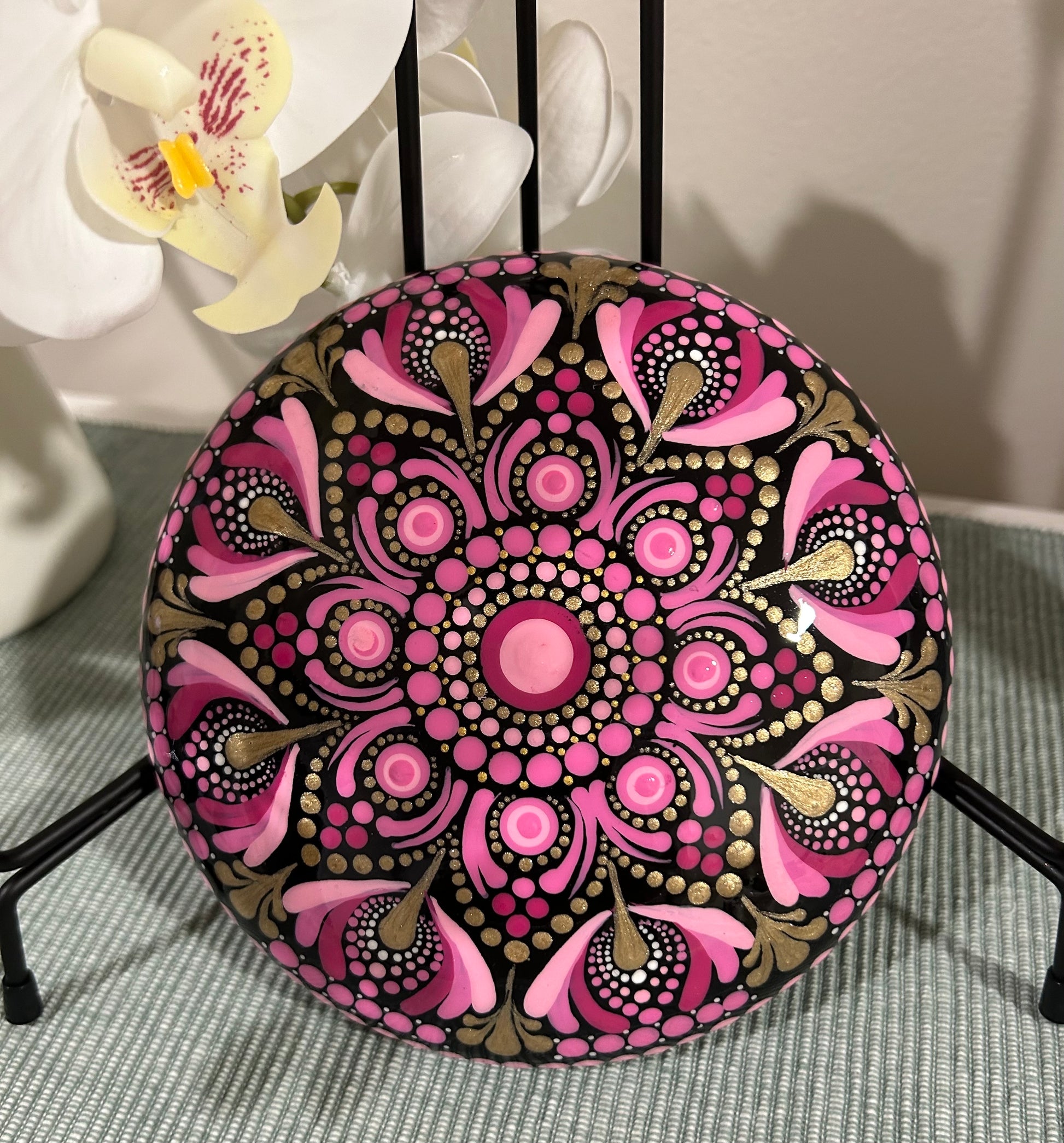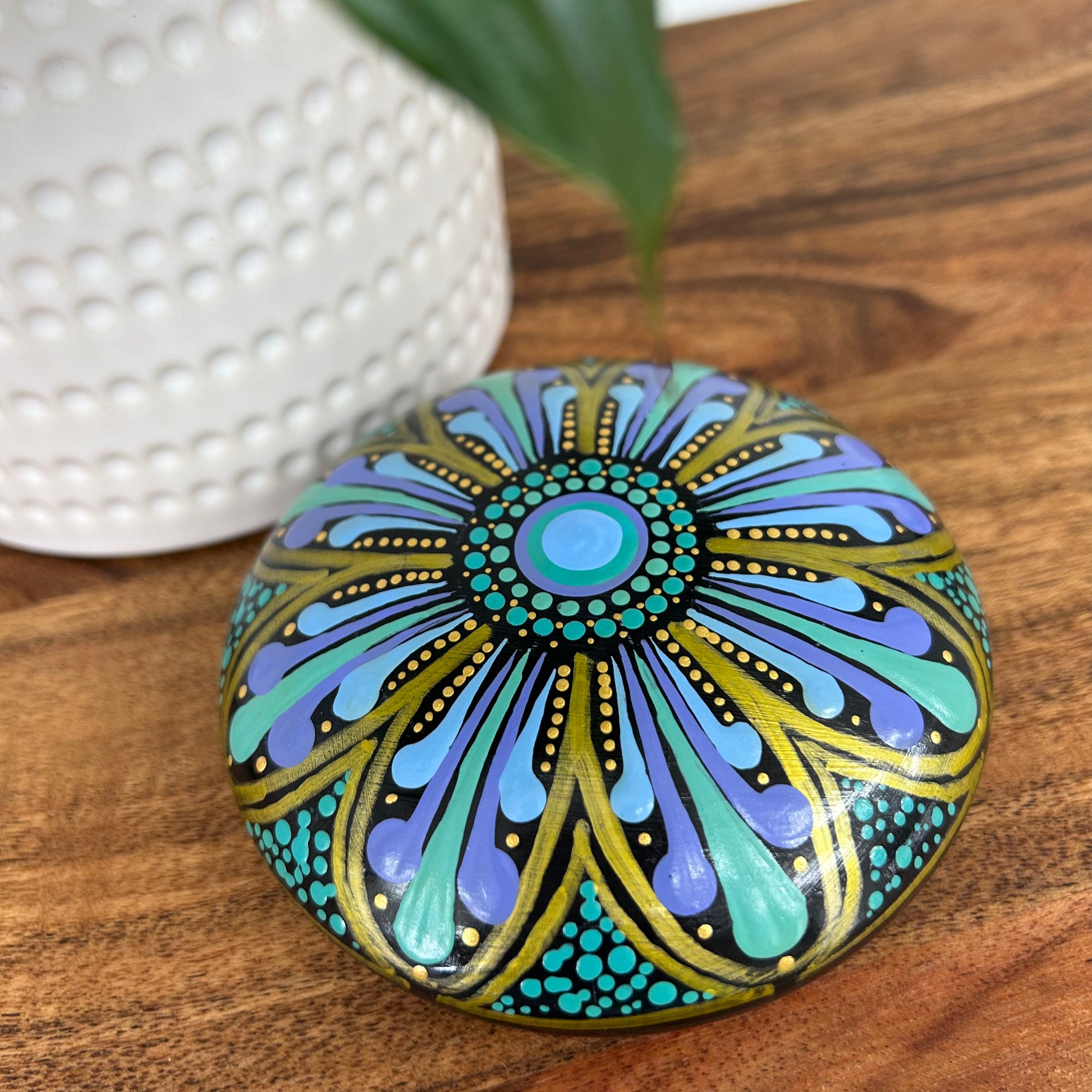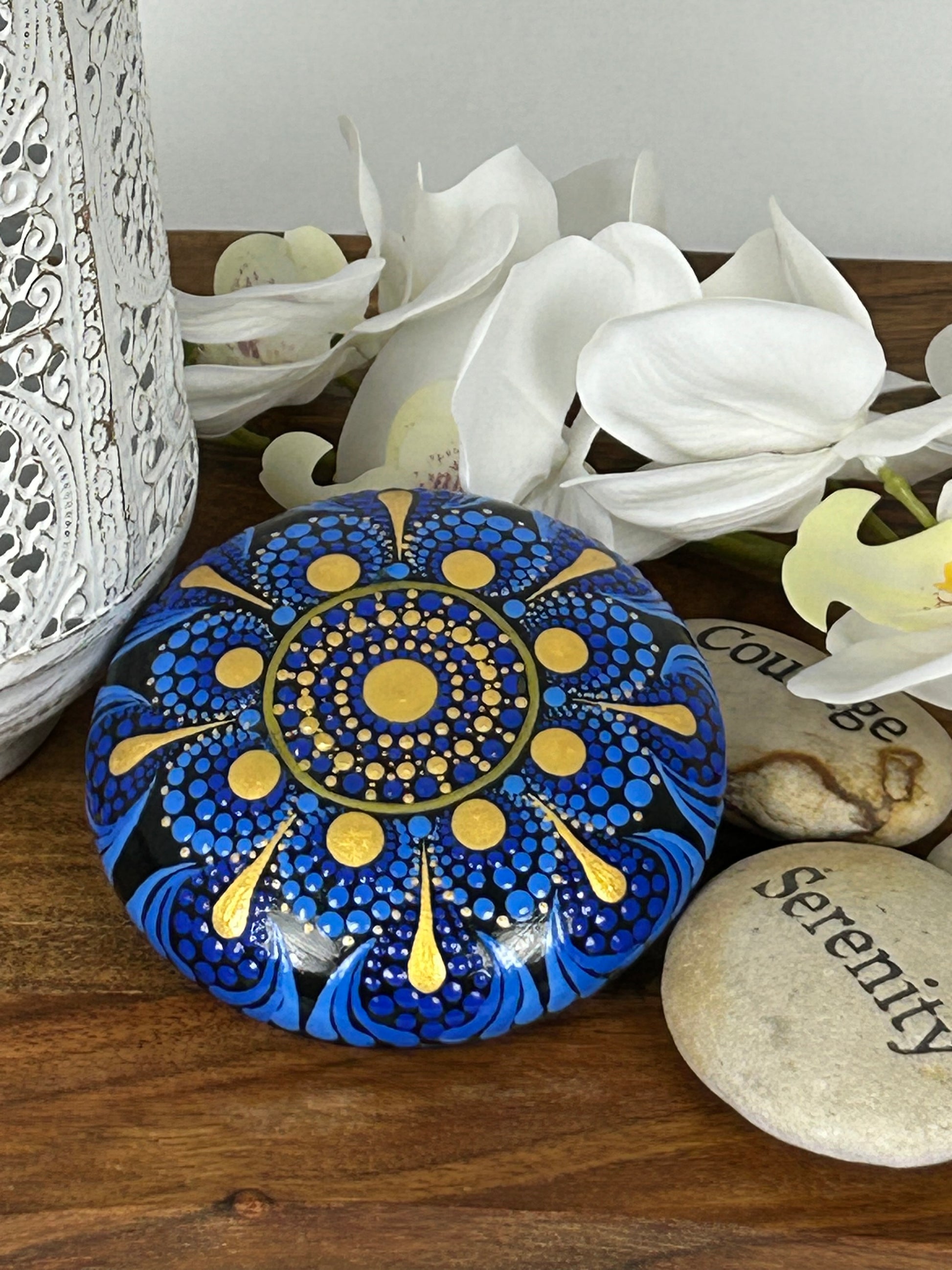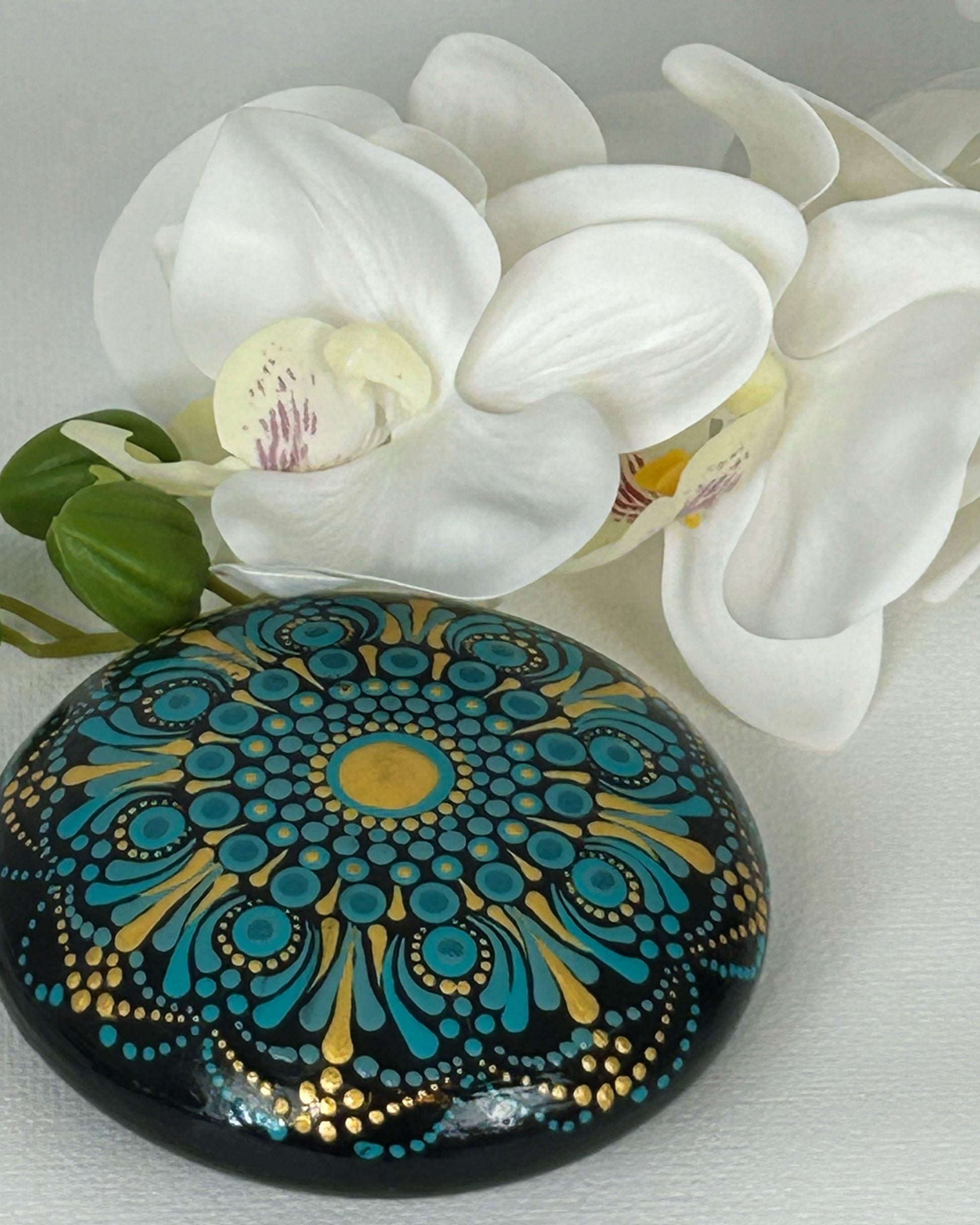 Each stone is meticulously had cast and lovingly hand painted, ensuring that no two designs are ever identical. Finished with two coats of high gloss varnish, they not only protect the exquisite artwork but also add a mesmerizing sheen that elevates their beauty.