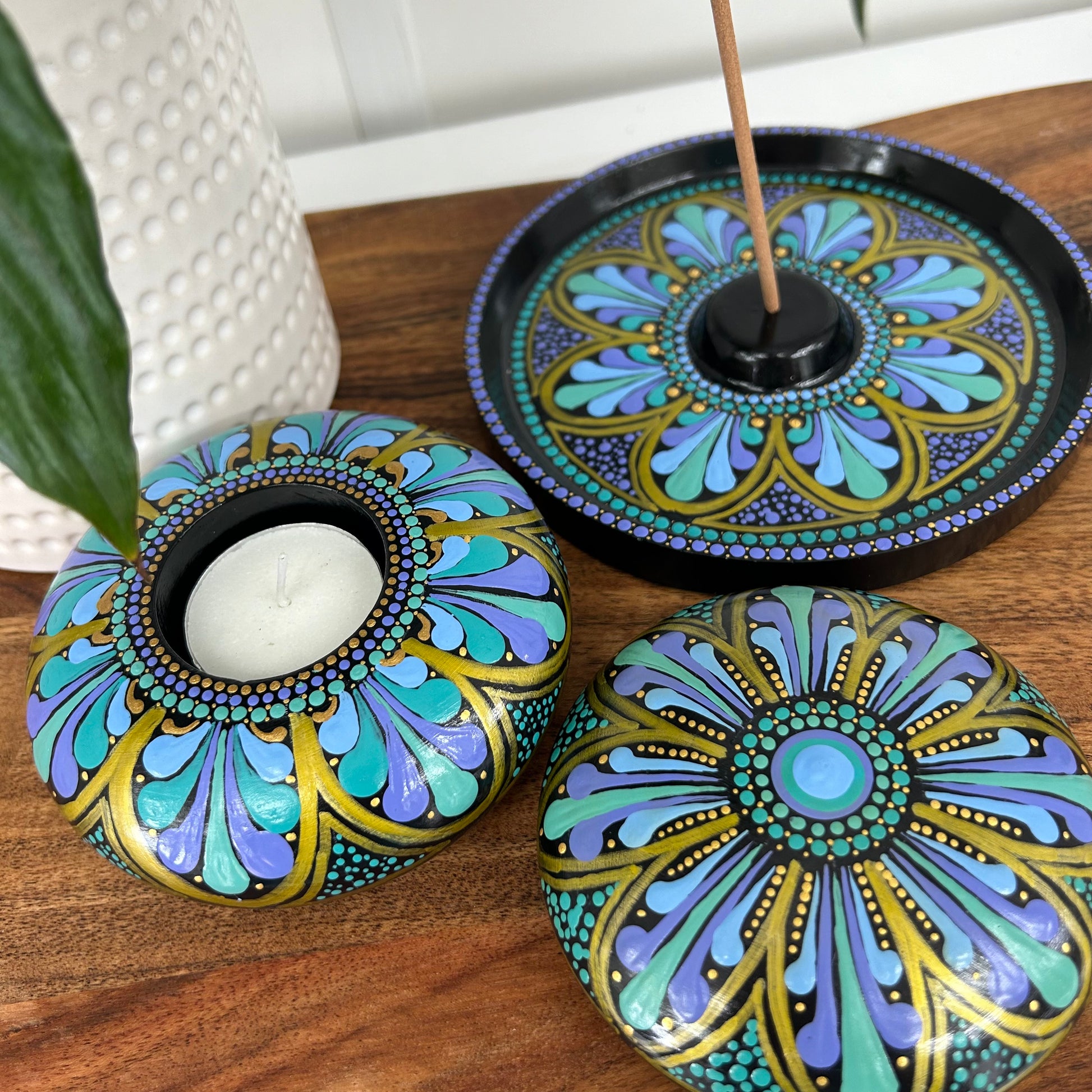 Create a captivating atmosphere by pairing your Worry Stone with our exquisite Tealight Candle Holders and an elegant incense holder, crafting a stunning set that enchants the senses.