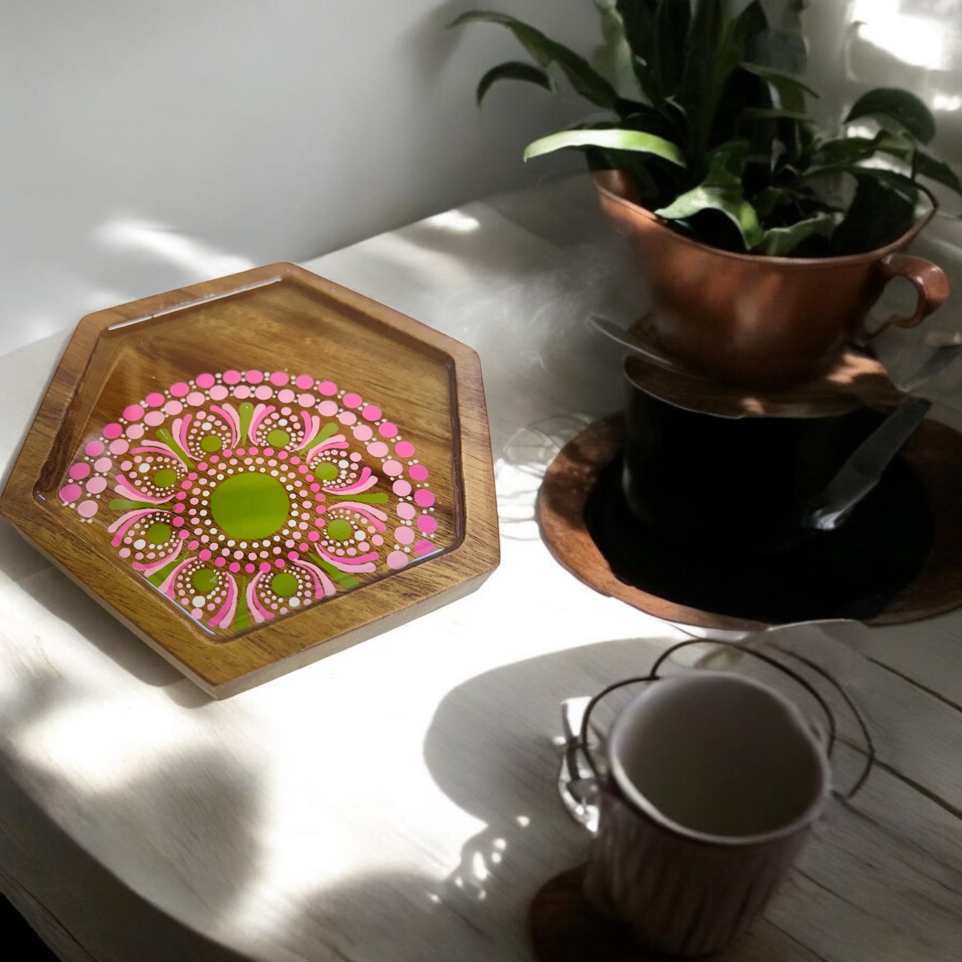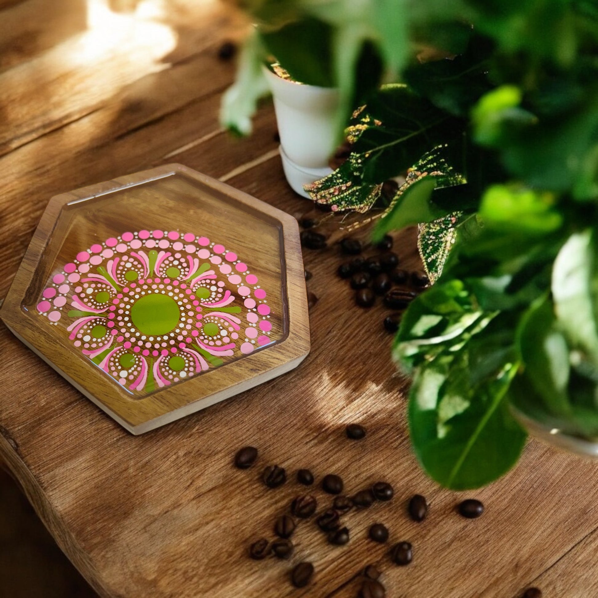 Discover the charm of this stunning rustic wooden masterpiece, designed to captivate and serve in countless ways. Whether you're organizing your favorite jewelry, storing cherished trinkets, or safeguarding your surfaces as a stylish drink coaster, this piece does it all. Each item is meticulously hand-painted and coated with a resilient layer of resin, ensuring that the art remains as protected as it is beautiful. With dimensions of 13cm wide by 11.3cm high, this piece is perfectly sized for a multitude of uses. Remember, each creation is uniquely hand-painted, so no two pieces are exactly alike—adding a touch of individuality to your collection.