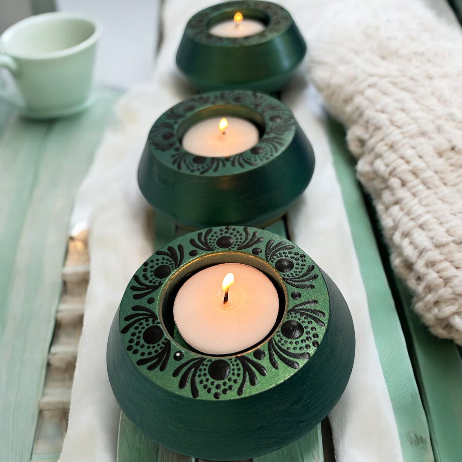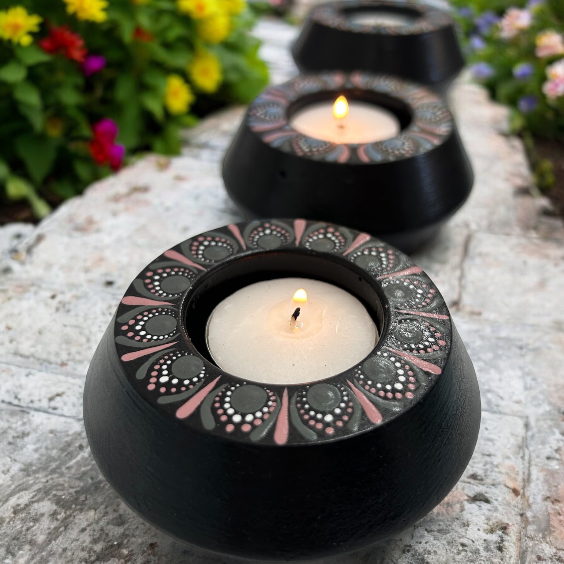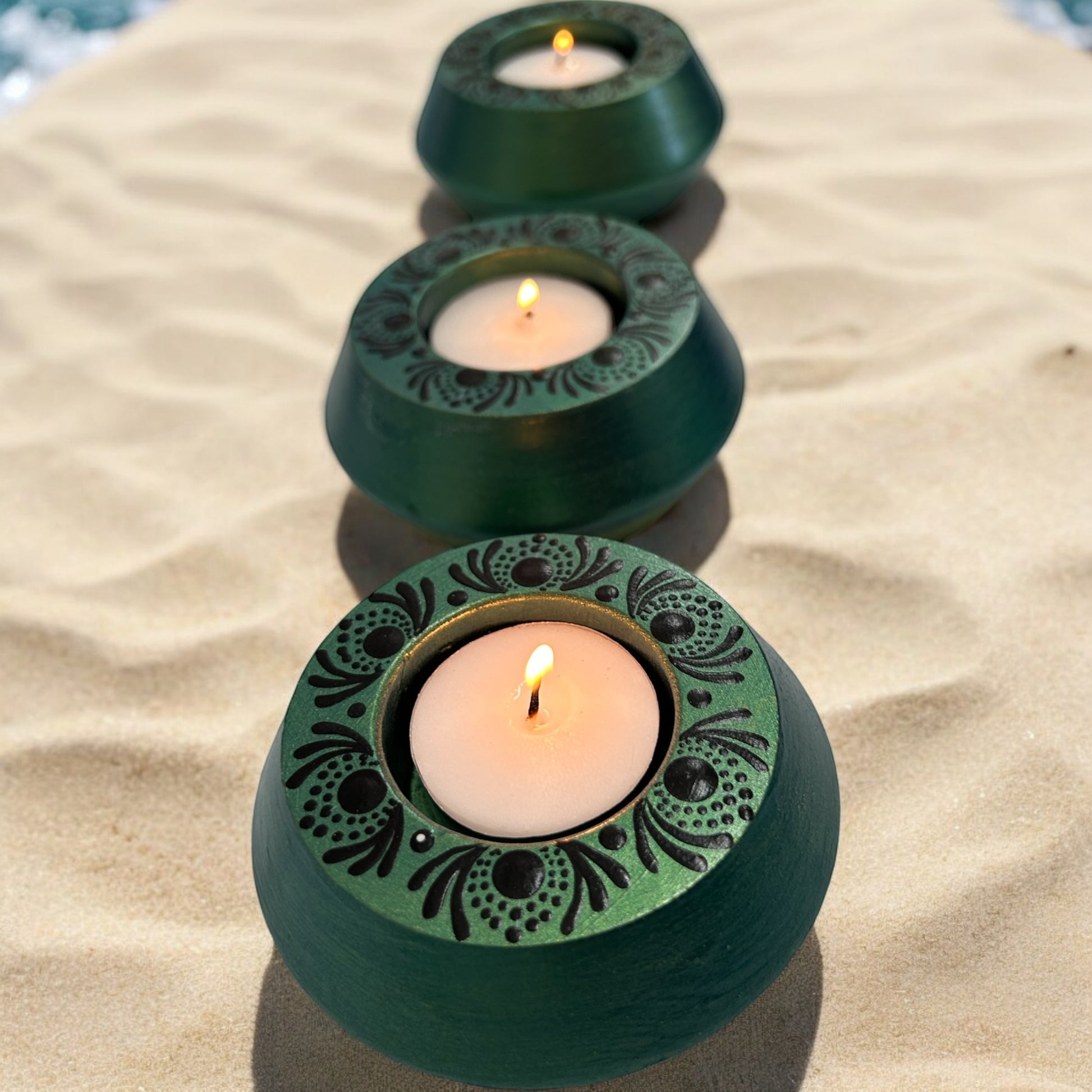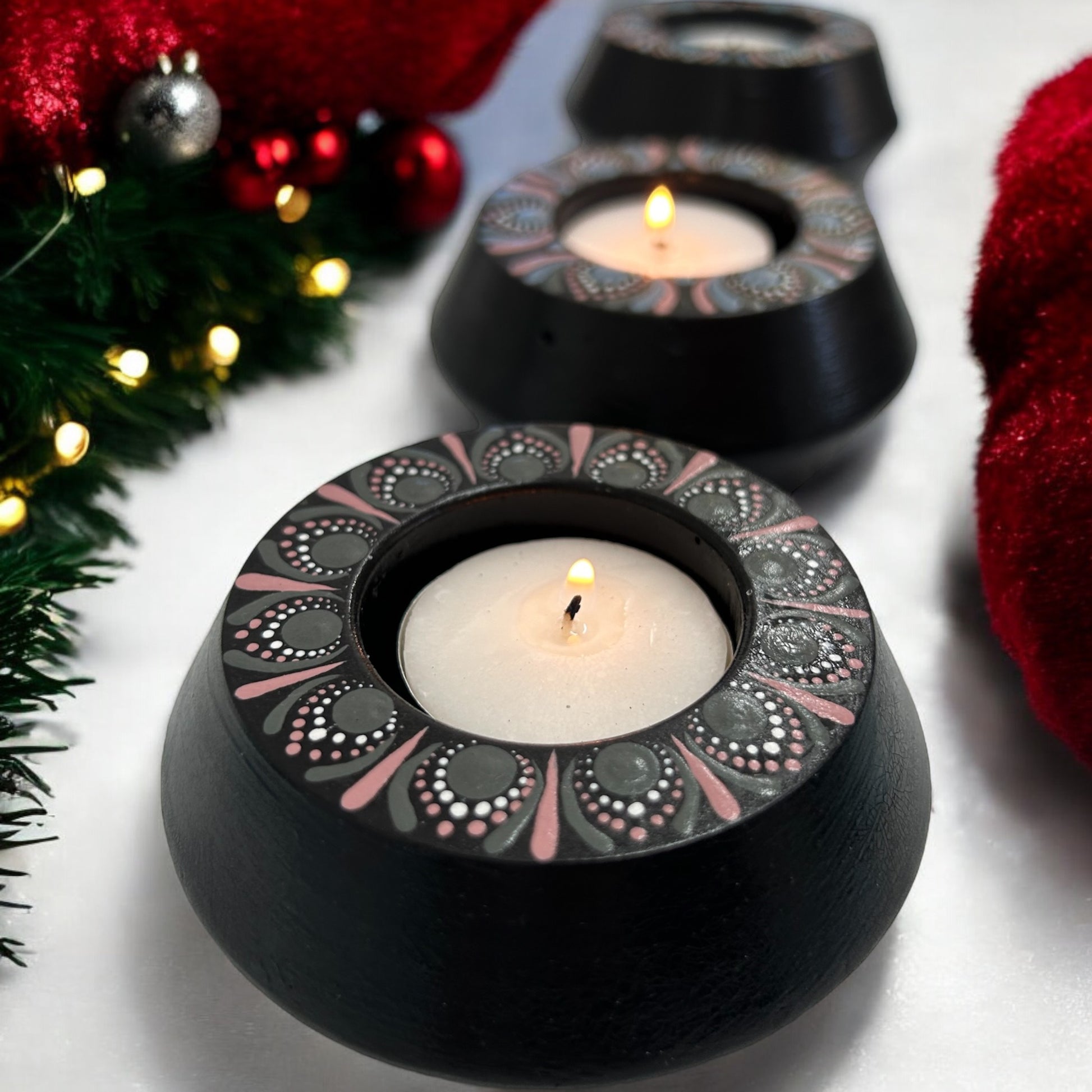 Transform your space with our stunning Tealight candle holders, perfect for any event or simply to elevate your home decor. Add a dash of charm to your Christmas table setting with these exquisite pieces. Each holder stands at 85cm in diameter and 40cm high, crafted with care and hand-painted for a unique touch.